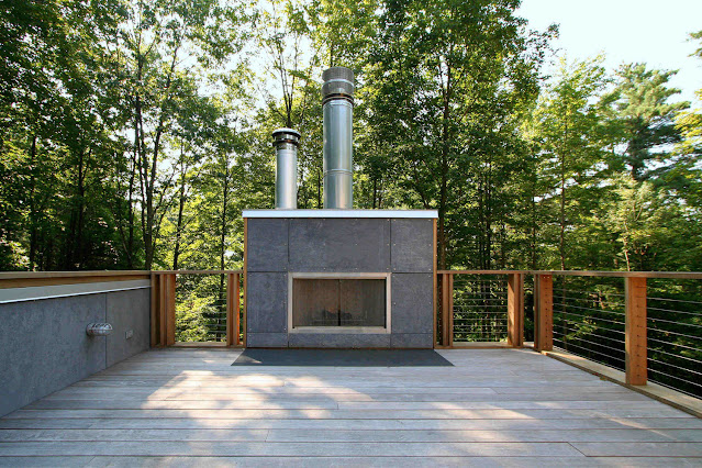 Situated three hours north of New York City and two hours west of Boston, the Berkshire Mountains have long been a vacation destination for urban dwellers. This particular escape was designed for a Brooklyn couple and their teenage son for use primarily on the weekends throughout the year. Raised slightly above grade, the house sits in a natural clearing on the edge of a plateau, overlooking a steep drop formed by the Housatonic River.